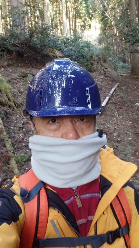私のように沢で落石に遭ってもこれで大丈夫今日はドライブではないので引き返し、確認しておいた「ヨコタ峠」登山口へ。初めはアラ谷右岸のスギの植林の中。支尾根になると落葉に埋まる掘割の古道。倒木が邪魔してくれるが、残雪はまったくない。スノーシューを車に積んできたが、そのまま眠っていてもらうことにした。