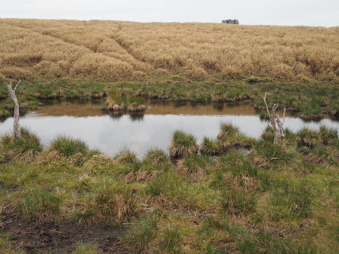 ササヤブの中にポツンと浮かぶちいさな池。水と地形が織りなす奇跡のような風景ですね。