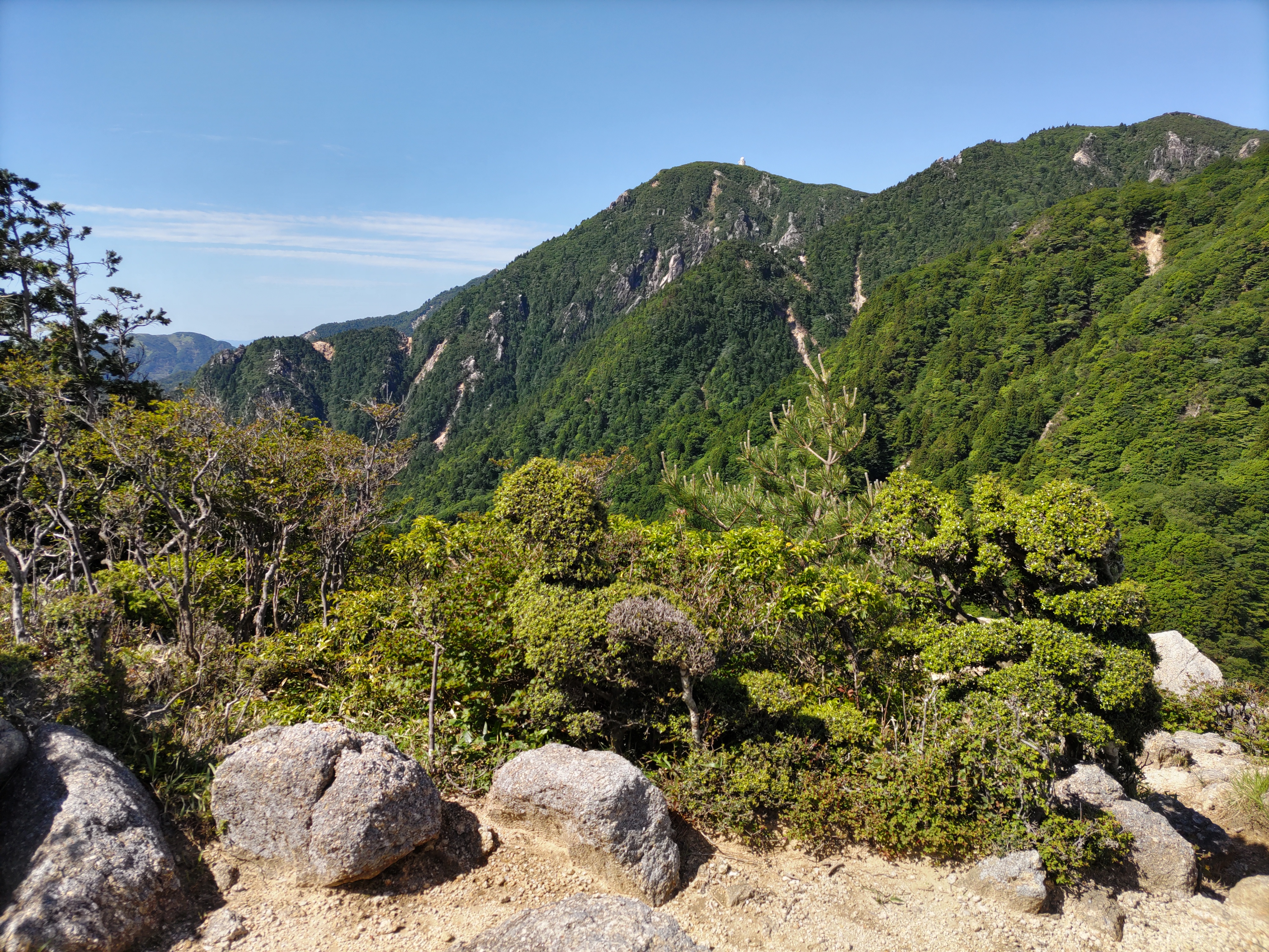 広々したイメージだったが意外とこじんまりした山頂だった。南に御在所,北に釈迦ケ岳と眺めはいい。