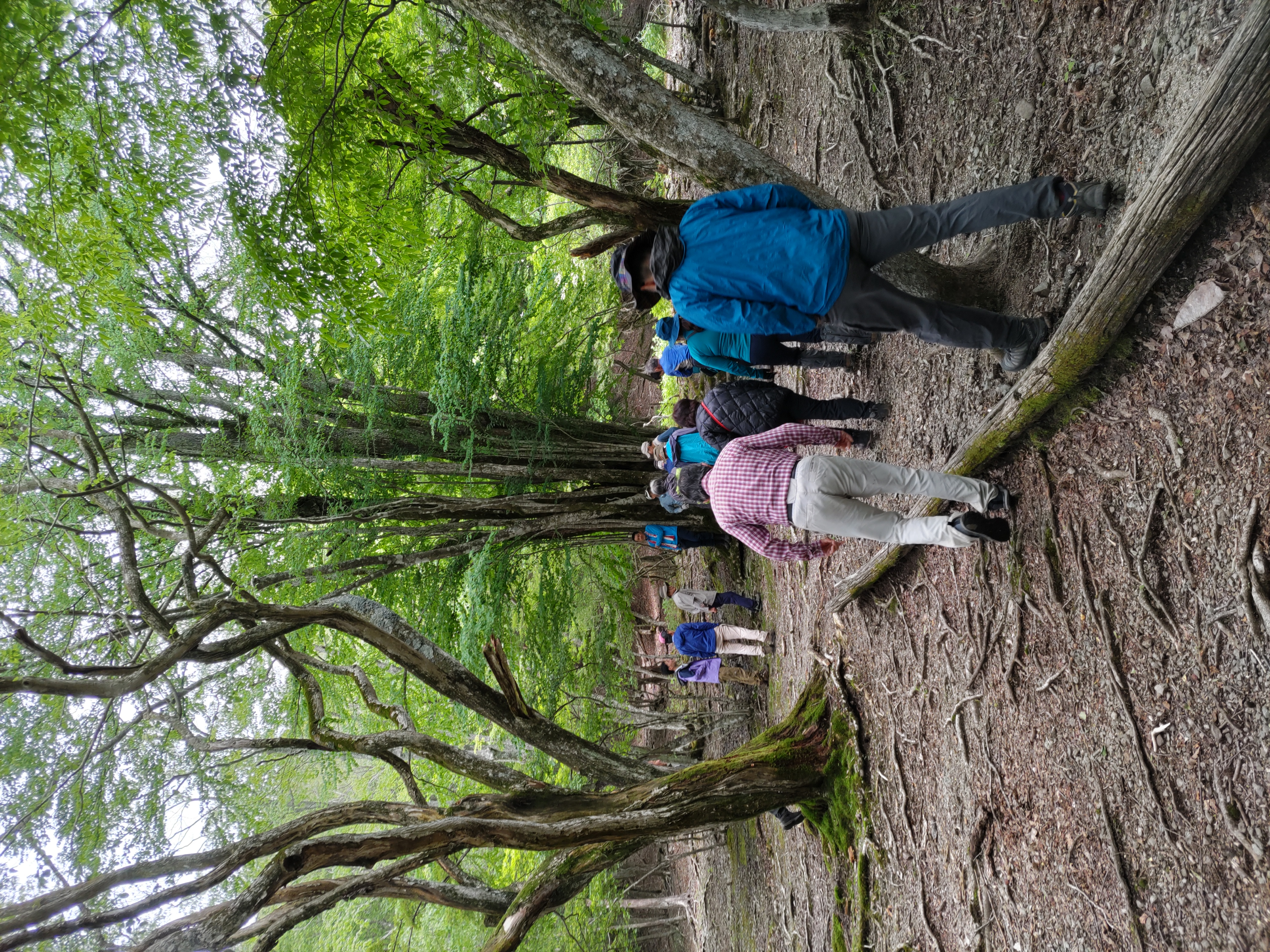 希望荘の脇の道から東海自然歩道を歩いて風越峠へ向かう。わずかに入ったところの「コメダの森」という植樹林。