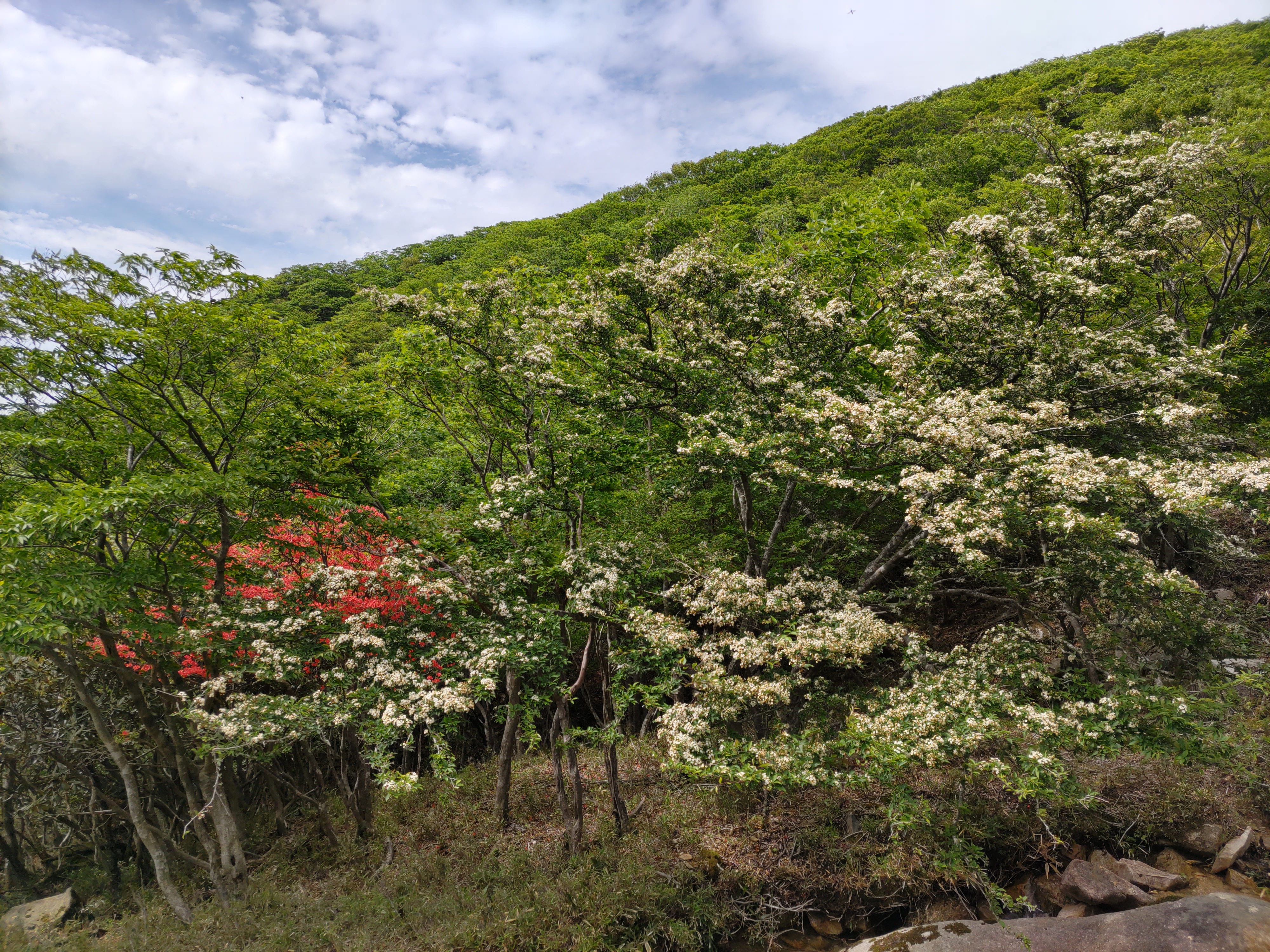 シロヤシオは終わってたけど、ドウダンツツジ系の花が満開でしたね。シロヤシオは今年はゴールデンウィークに宮指路からイワクラ尾根への途中で見ました。いい感じでした。