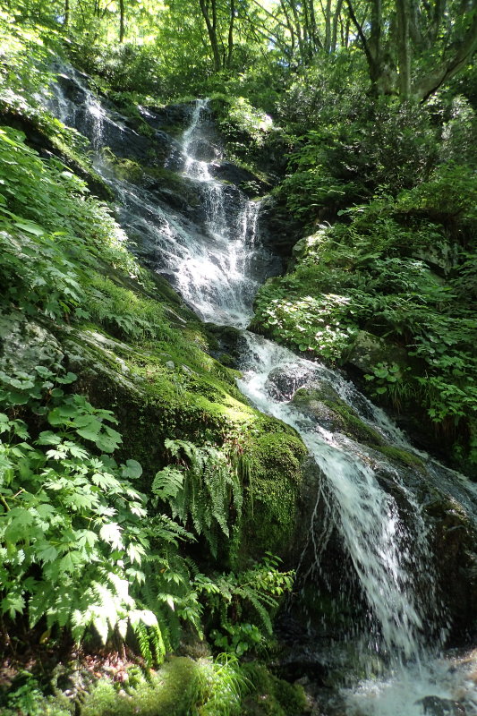 左俣も趣がありました。ナメの横をソロソロと登っていると、はるか上の緑の隙間に、水が流れ落ちる岩の壁が見えて息を呑みました。
