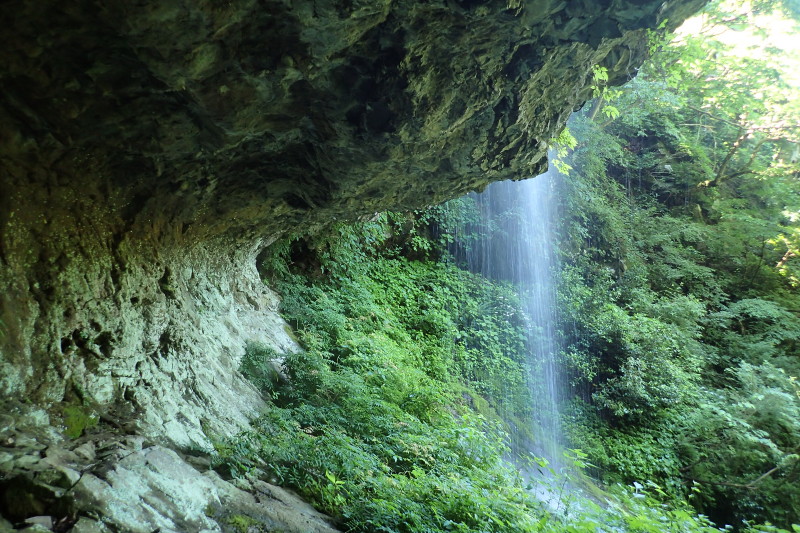洞窟の中はひんやりとして、右端に落ちる滝を裏側から眺めることができる。なにか厳粛な気分にさせられる