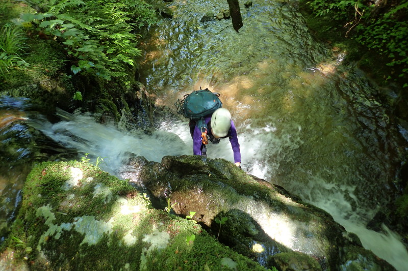 小さいながらも直登の難しい滝が多く、できるだけ小巻きで通過する。もちろん登れる滝は積極的にトライ