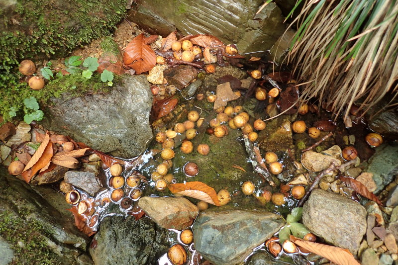 上流の実は小粒でしたが、谷底を覆うほど落ちていました。淵の中にもたくさん。