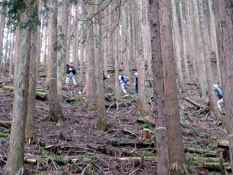 登山道を登って行く人たちと別れて、作業道を西に歩く。