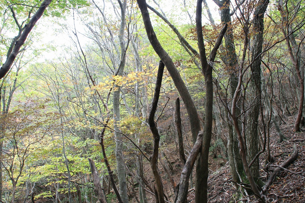 奇形の木は山の神の怒りを恐れてきらない風習のおかげで貴重なブナが残ったんですね。