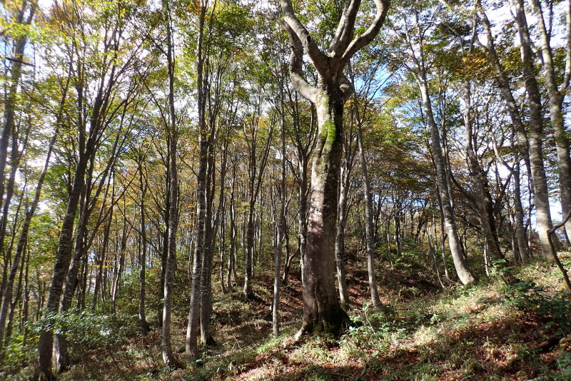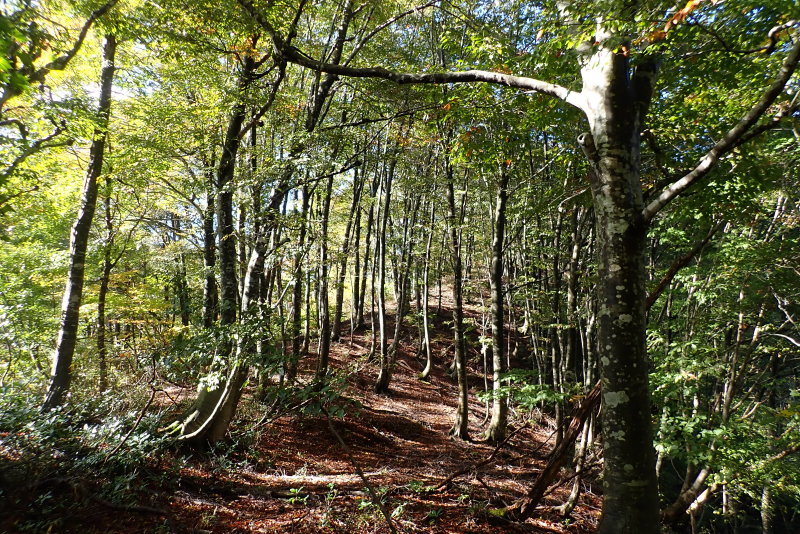 最初こそ植林でしたが、ピークから先は、ほとんどブナの森が続いていきましたね。