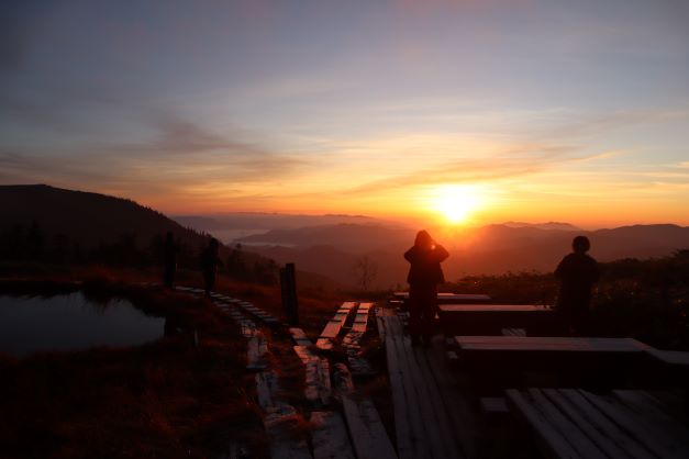 小屋の前からでも日の出は見られそうだが、少し下がったところでその時を待つ。