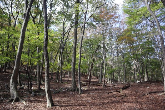 うつくしい二次林の中に炭焼き窯跡が点在する登山靴で歩ける谷です。