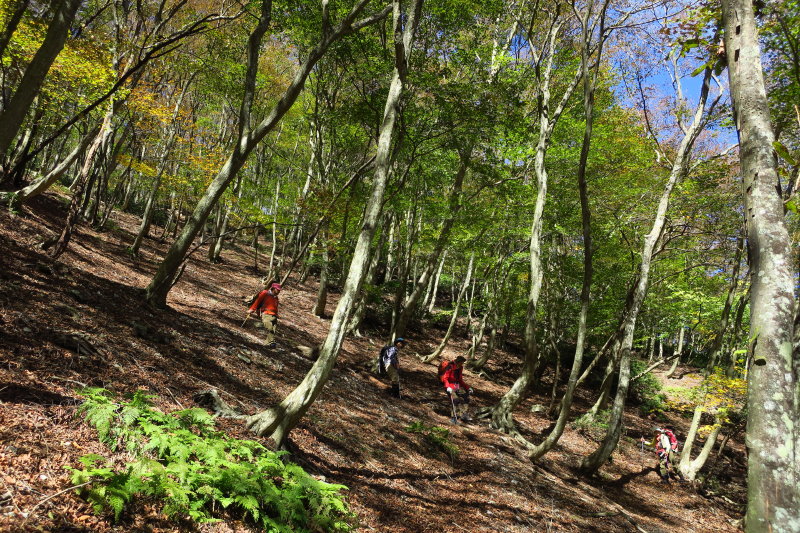 winriverさんは肩を痛めたtakaさんのザックとダブルザックになる。若い方はそのくらい担がないと高齢者と一緒には歩けないからちょうどいいかな。いや、下りは重いほうが速くなるんでしたっけ?でも、ゆっくりと私の後ろを歩いてくださいました。礼儀正しい方たちです。ありがとうございました。