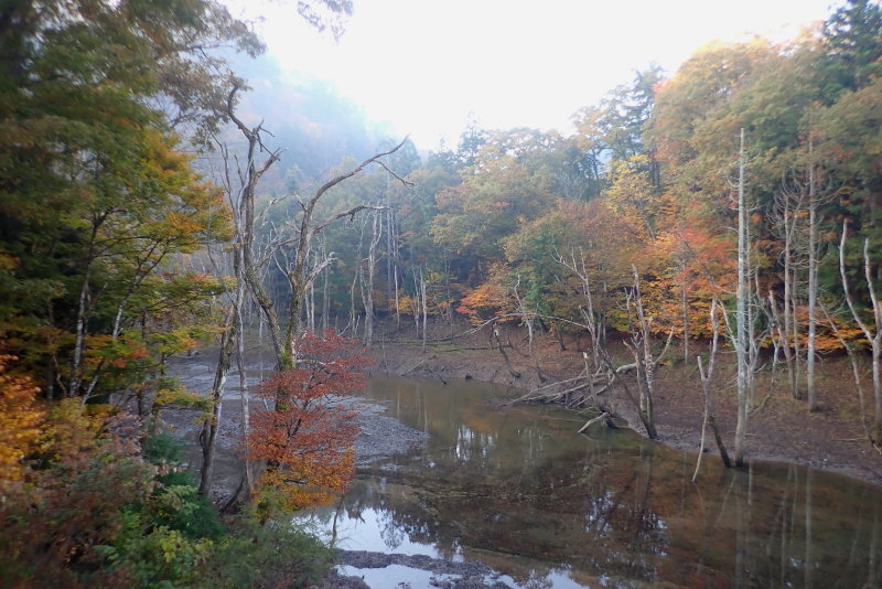 ては走りやすい部類と言えるだろう。林道沿いの林はずっと自然林が続き、紅葉が美しい。
