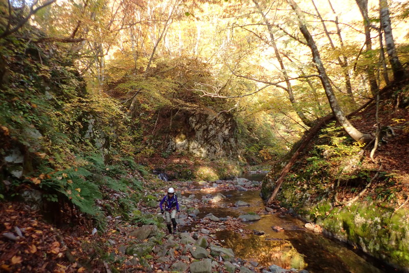 蝿帽子を歩くなら紅葉の時期と決めていました。この時までそれほど強い思い入れがあったわけではないんだけど、若谷の下りで意外な森の素晴らしさに触れて、蝿帽子川もきっと同じようなんだろうという思いが湧いてきました。