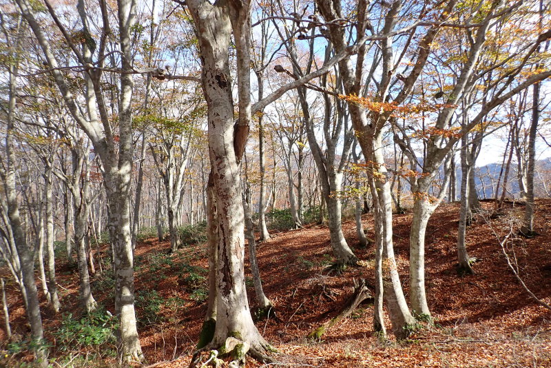 林としての完成度が高いように思う。この高度になるとブナはすっかり葉を落として冬の装いだ。