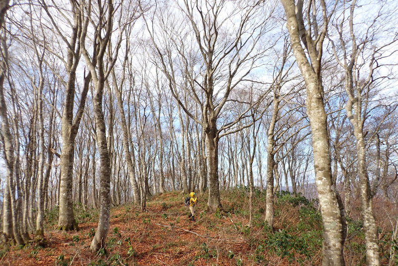 Ca820mのピーク周辺からはブナの純林となった。ピークから西に派生する尾根が魅力的だ。