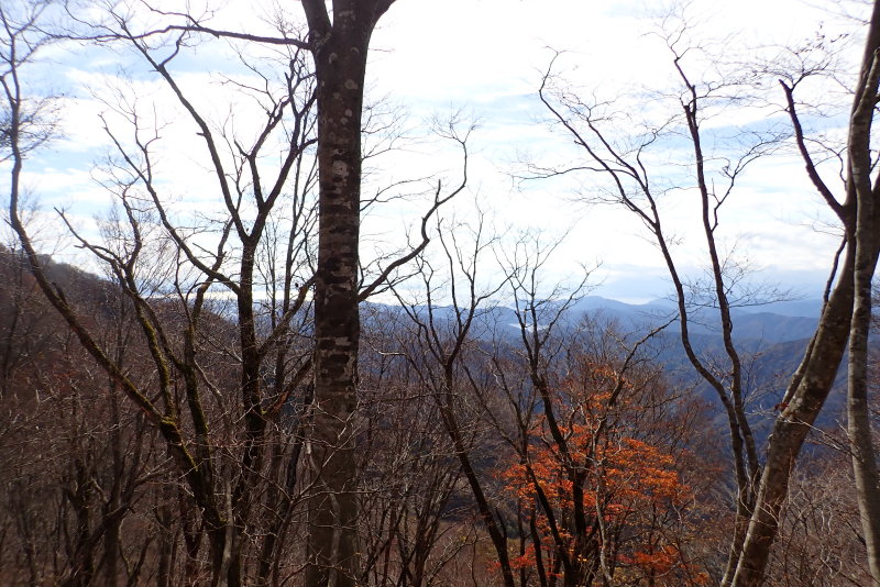 振り返ると谷山から左千方への稜線が明るい初冬の姿を見せていた。