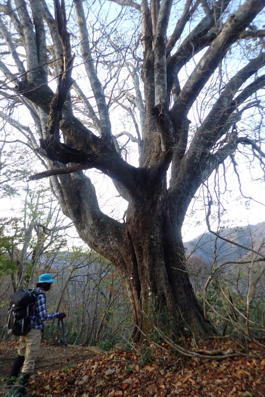 尾根に登るとやはり仕事道の跡が残っていました。あがりこのブナの巨木は貫禄がありました。