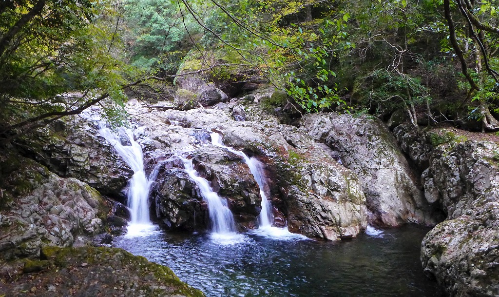 今年最後の沢旅は紅葉とナメを求め、海を越えてほぼ四国を横断した。