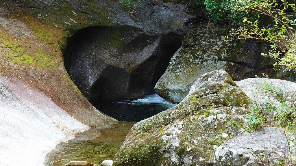 雪輪の滝は右岸から流入する支流の滝 本流のミニゴルジュの造形も素晴らしい。
