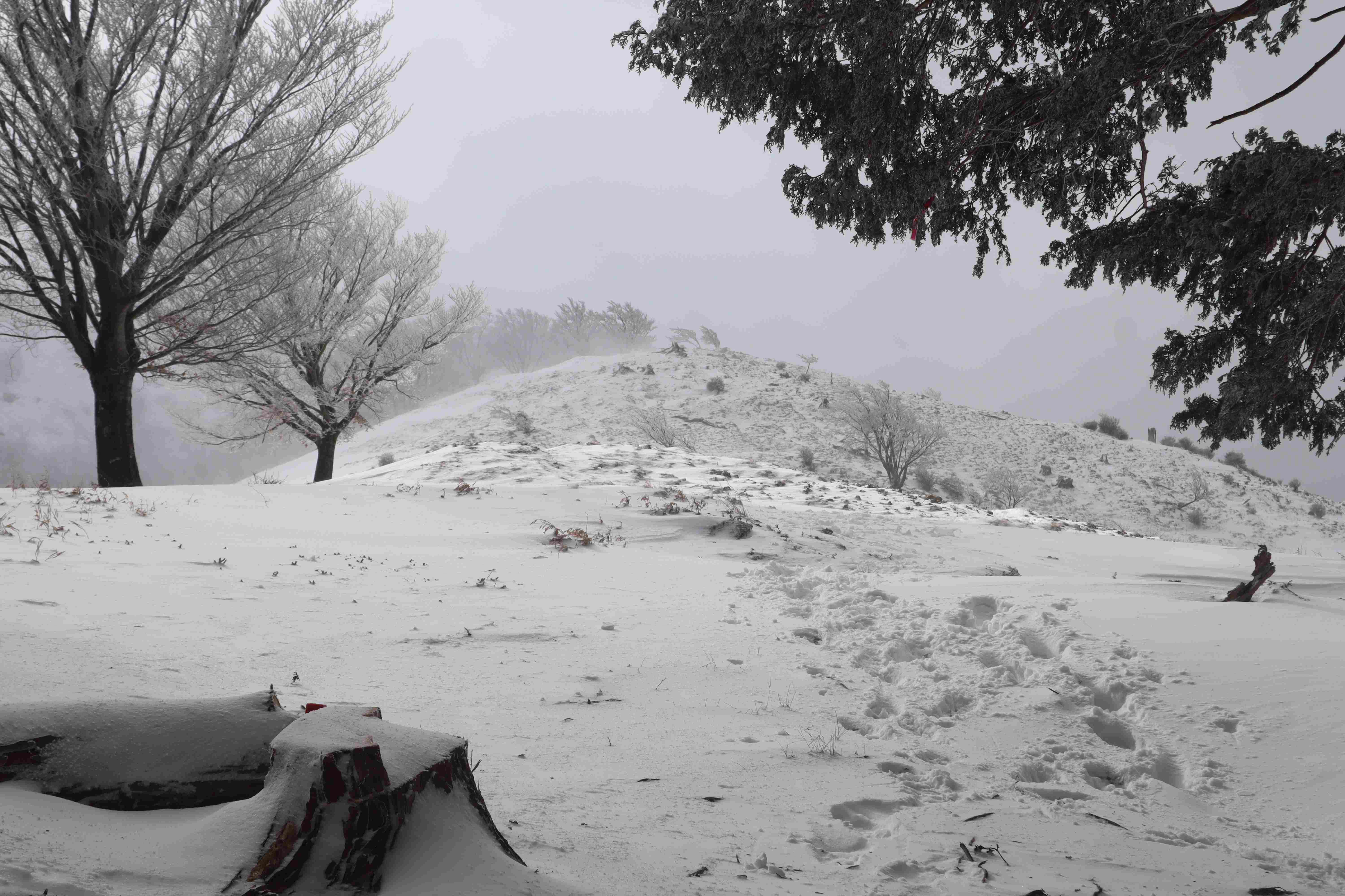 積雪に霧氷がありましたか。よかったですね。昔は桧塚東峰で雪洞を掘って遊んだ年もあったのに、近年寡雪です。