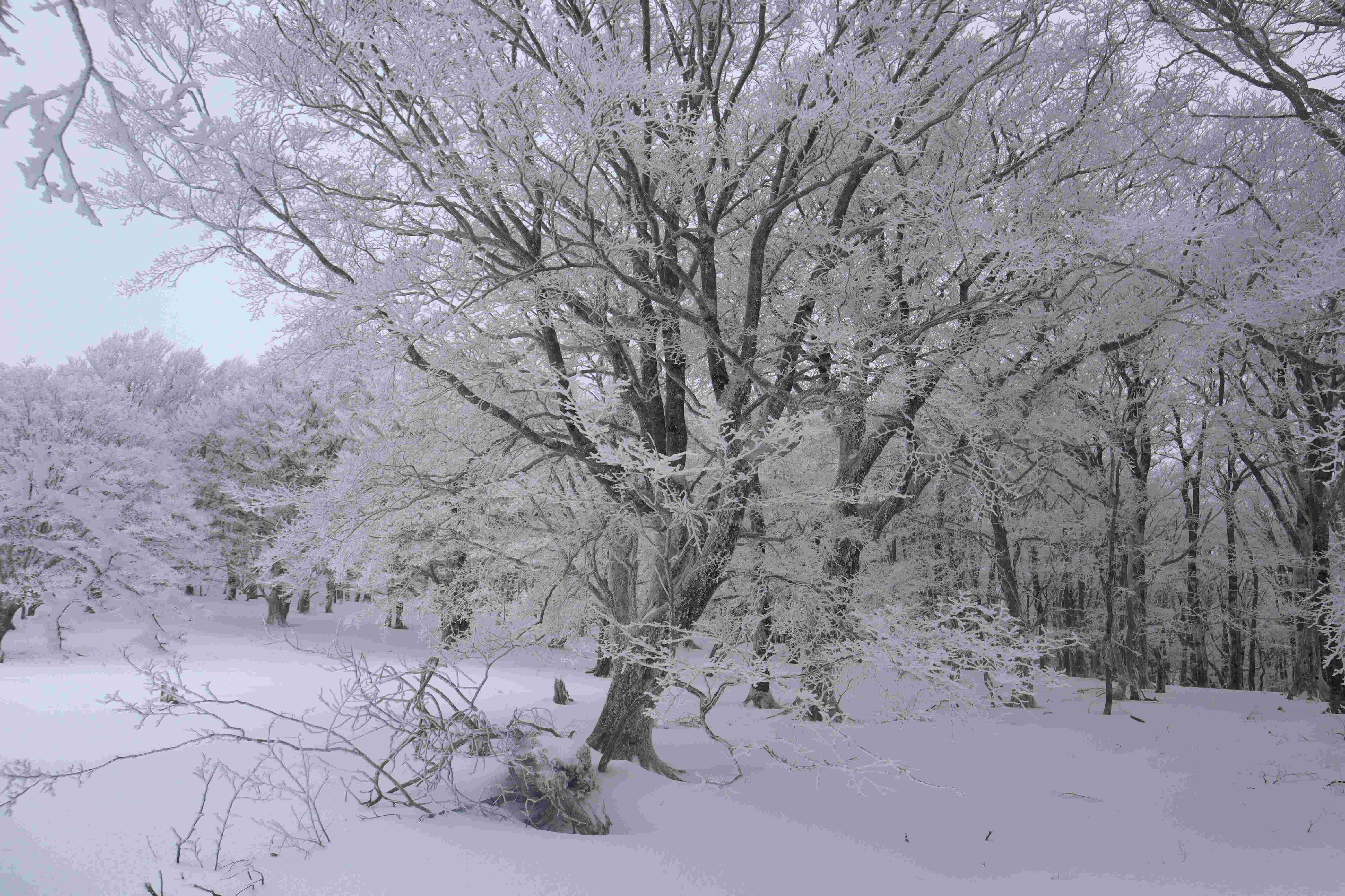 霧氷の森が美しい。