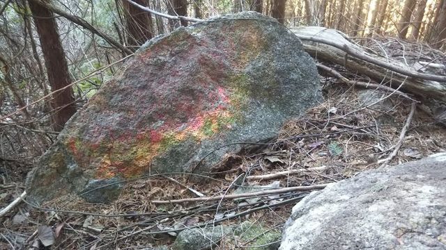石や木に書かれた文字は消してありましたが、少しその跡が残っている石もありました。知らない人が見たらなんだろうと思うでしょうね。