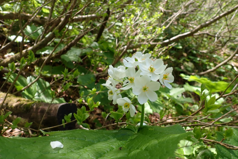 楽しみにしていたサンカヨウは、気になっていた地形に群生していました。やっぱりちょっと湿った場所が好きなのですね。