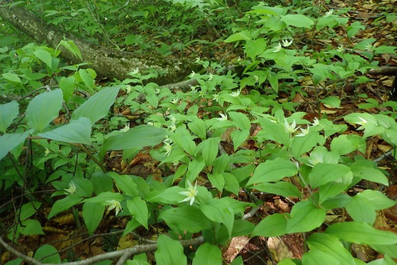 しばらくするとチゴユリが出てきて、ずっと続いていきました。まさにチゴユリの花咲く道でした。
