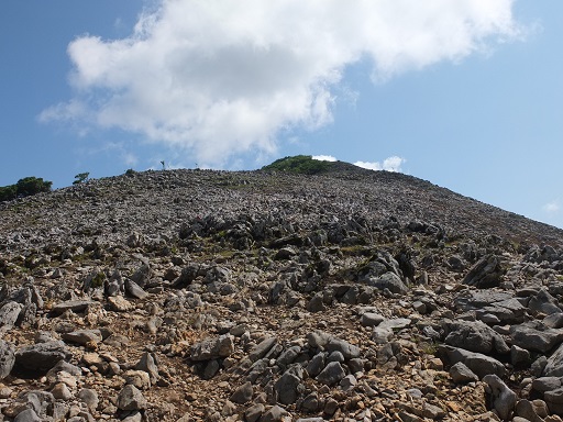 ゴツゴツした岩稜を歩いた後は緩やかなカルストの草原を下って行くこの舞台の転換は賽の河原を歩いた後に極楽にたどり着いたような気分になります。先人たちもここを聖なる地として崇めたのももっともでしょう。