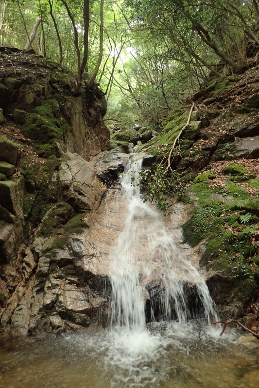 右の大岩谷へ進むと幅広の3m滝が出迎えてくれる。白い花崗岩で構成されたこの谷の中で、突然変異のようにこ