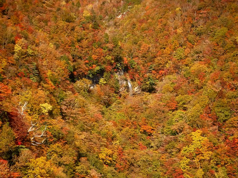 ヌタウを登ってヌタハラ谷不動滝の紅葉をもう一度見て、