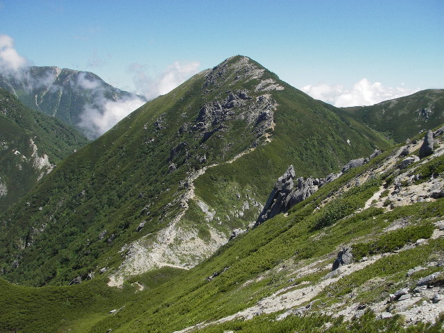 追いついて来た南駒ヶ岳まで行くというトレランコンビを見送ってから目の前の山頂へ向かいました。
