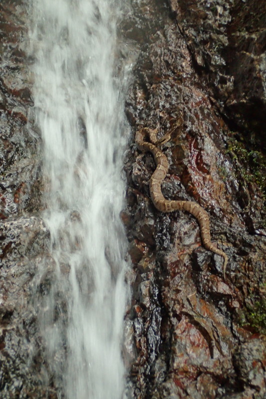 谷の上部では、なんと滝で水浴びするマムシと遭遇されたのですね。