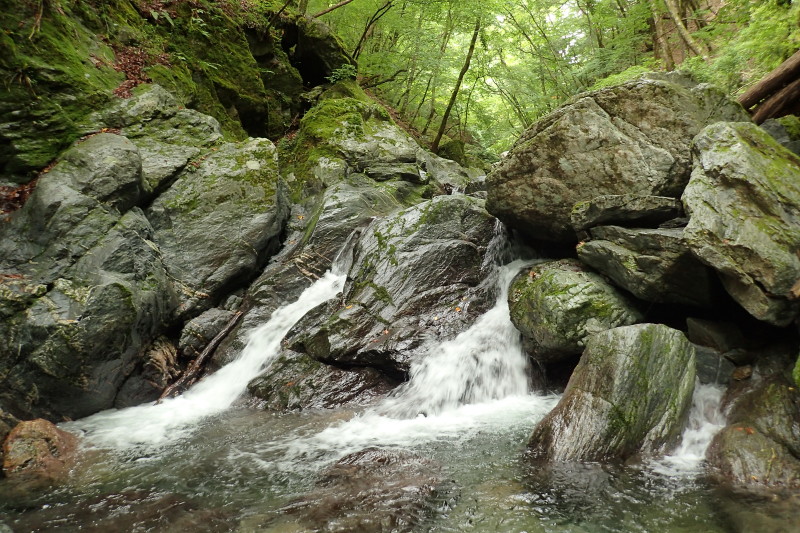 「川」というだけあって谷幅は広く解放感が抜群だ。それでいながらゴロゴロ転がる大岩・小岩は苔むして、