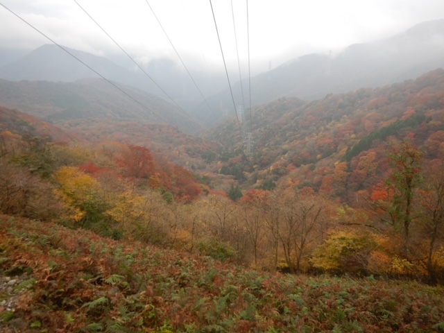 今年は秋の訪れが遅く紅葉をうまく見られないと寂しい思いをしていたが、今回その分を取り返すような秋色の尾根が続いた。天候はよくないがその分しっとりした色合いで目を楽しませてくれる。