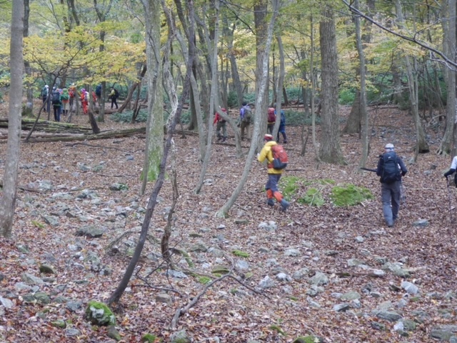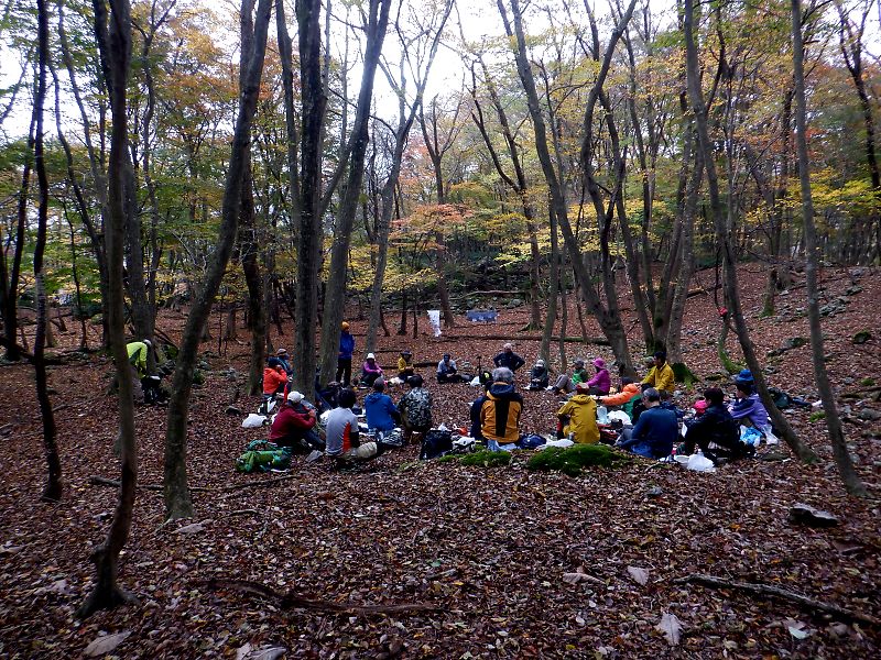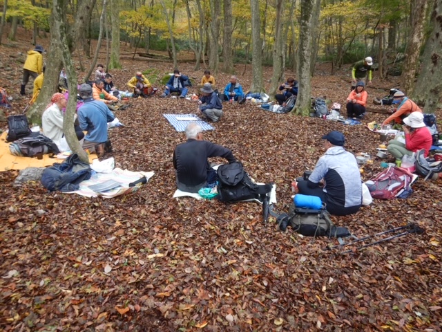 恒例の集合写真を撮って閉会。ほとんどのメンバーはビワ池方面から下山の模様。一人で阿蘇谷に向かった。横切ったダイラの木々は優しい秋色をして包み込んでくれた。その中を名残惜しみながら抜けていった。
