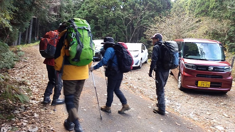 甲賀の不死鳥とも噂されるとっちゃんをピックアップして9時少し前に柚之木峠の駐車場へ着くと、すでにほかの3人が欠伸しながら待っていた。知る人ぞ知る「徳」などとっくに使い果たした面々である。交通事故、雪稜滑落、沢でのアクシデント…と、数えればキリがなく、思い起こせば日が暮れる「伝説」の持ち主ばかり。果たして今日は「佛難」を逃れられるかどうか…少しだけ不安がよぎる。
