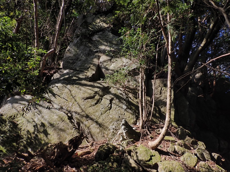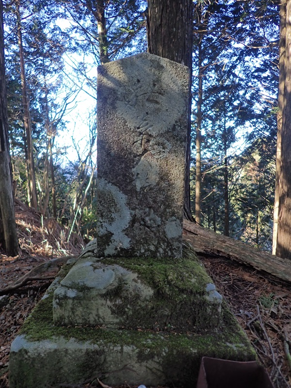 この先も自然林のいやらしい斜面があるが、炭焼きで使われたアガリコが出てきて道が安定してくる。登山道に合流し急な上りをこなすと大日展望台で、秋葉大権現が祀ってある。春分の日には、掘坂山の奥にある神島からの朝日が眺められるだろう。