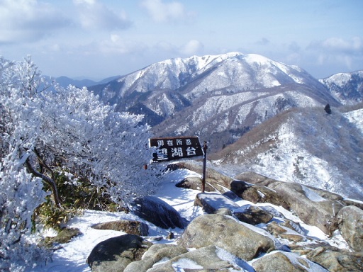 最高点の望湖台からは白く輝く雨乞岳がくっきりと見渡せました。
