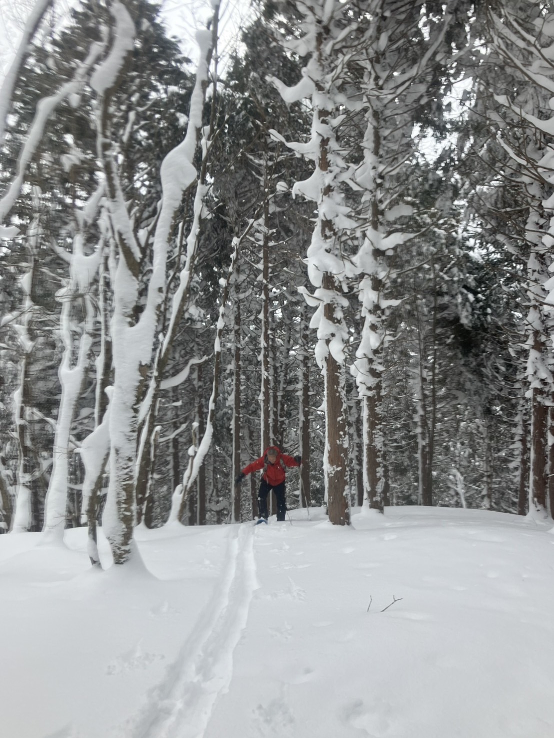 >深雪でノートレースだとシール歩行とスノーシューの浮力の大幅な違いが分かった山行でした。