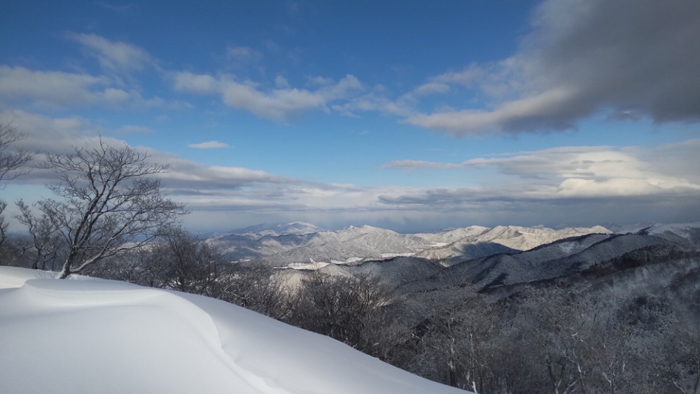 初めての雪の三重嶽もKさんとご一緒させていただいた時だった。ここから南に延びる尾根を登ってきた。