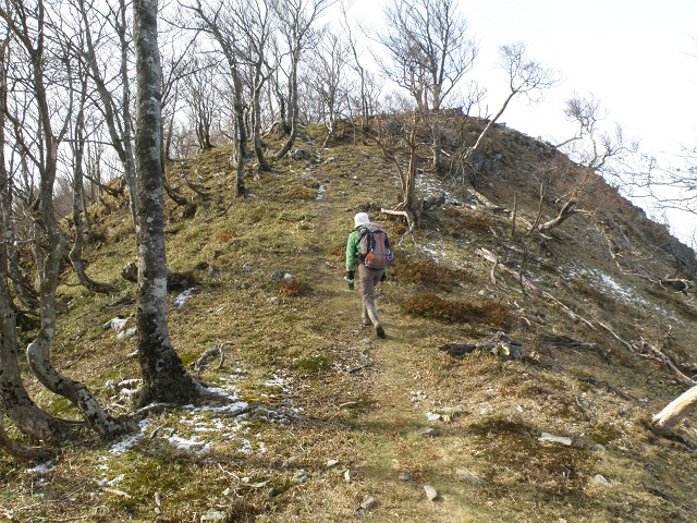 尾根が広がり、伸びやかな斜面を登ると稜線に着いた。