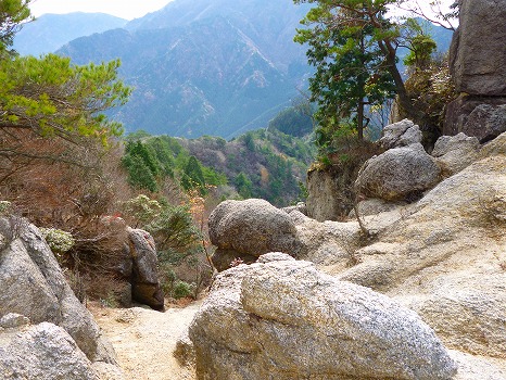 尾根は基本的にヤセていて、時折、赤松と黒松で盆栽風になる。