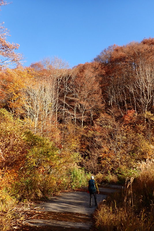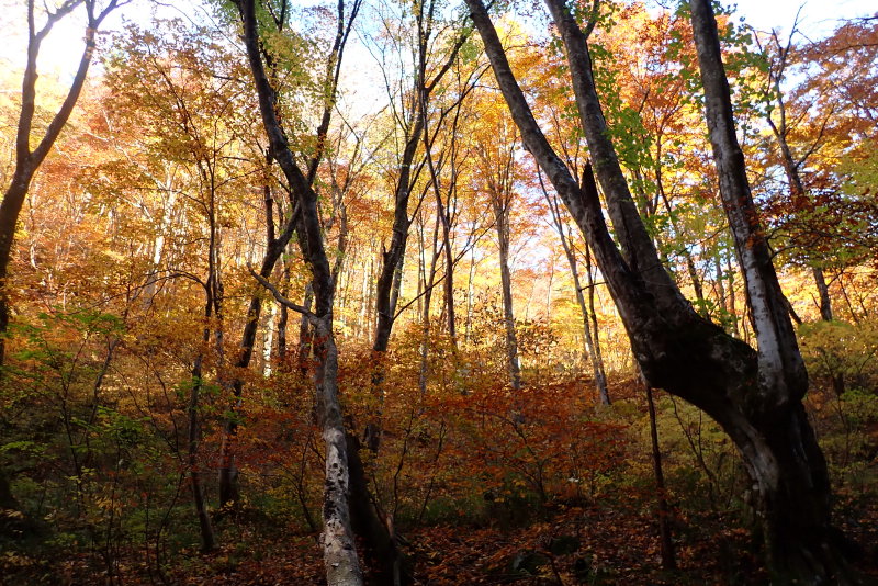 単調な林道歩きも、全山素晴らしい紅葉で、飽きることはありませんでした。