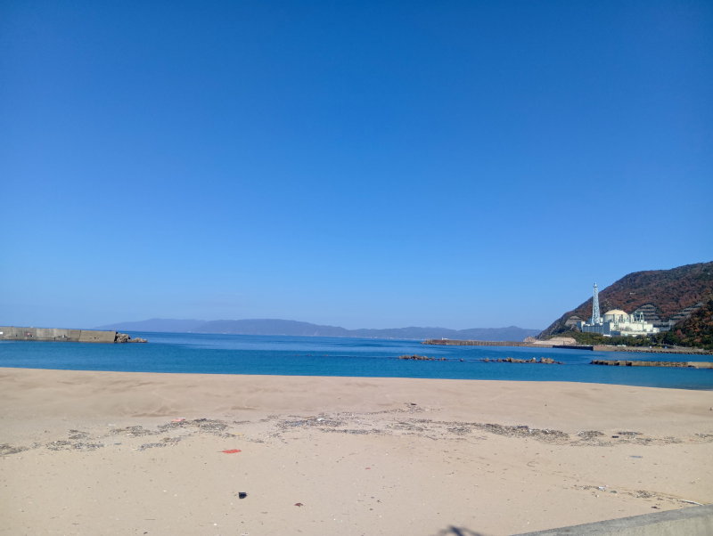 敦賀の町中を抜けると、朝の光を受けて穏やかに輝く海が目に飛び込んだ。