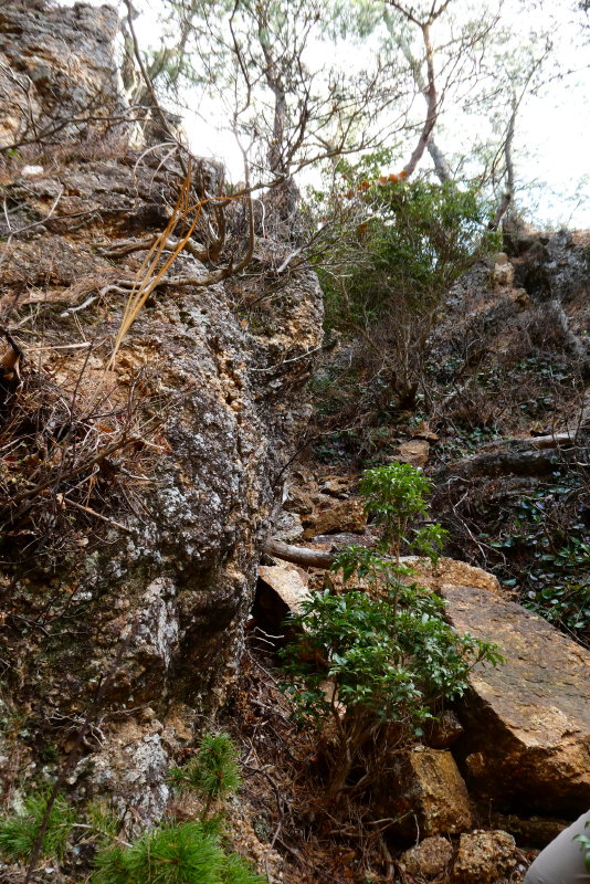 最低鞍部に立つと岩場が立ちはだかった。弱点を縫いながら踏み跡が続く。