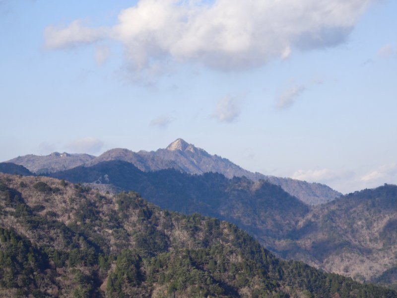 下山予定の778mピークまで来た。北には鎌ヶ岳の尖峰が天を衝くように聳えている。