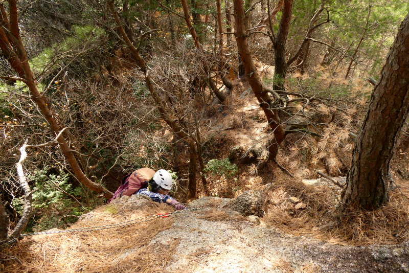 ひとしきり登ったところで少し段差の大きい岩が現れた。ホールドが乏しく、ここまで思ったより時間が掛かっ