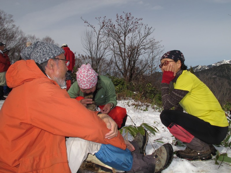 越中美女軍団に囲まれたラスカル君、Biwa爺ちゃま共々至福の時に包まれた福知山山頂なのであった。