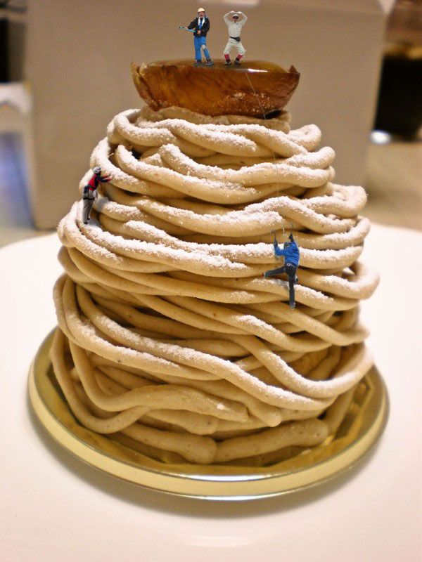 モンブランケーキにフィギュアを登らせて大喜びのオタクぽぽんた。